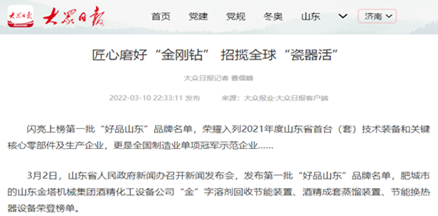 歷經(jīng)多年的拼搏創(chuàng)新,金塔已經(jīng)成為規(guī)?;⒊商谆?、技術(shù)化及節(jié)能化的酒精生產(chǎn)及廢液處理裝備專(zhuān)業(yè)制造商,是《酒精蒸餾塔》 《糠醛水解鍋》《糠醛蒸餾塔》等國(guó)家行業(yè)標(biāo)準(zhǔn)的制定者。以“金”字為商標(biāo)的酒精生產(chǎn)及其節(jié)能環(huán)保設(shè)備是國(guó)內(nèi)客戶(hù)尤其是知名大型酒業(yè)公司信賴(lài)的品牌,與中國(guó)酒業(yè)的龍頭企業(yè) 五糧液集團(tuán)三次合作,深得好評(píng)和信賴(lài),與天冠集團(tuán)、阜豐集團(tuán)、吉良集團(tuán)等大型燃料乙醇巨頭攜手,推動(dòng)了燃料乙醇技術(shù)裝備的進(jìn)步,向國(guó)內(nèi)28個(gè)省市區(qū)近2000家客戶(hù)提供了產(chǎn)品和技術(shù)服務(wù),建立了深厚的合作基礎(chǔ),并出口東南亞、東歐、非洲、南美等多個(gè)國(guó)家。